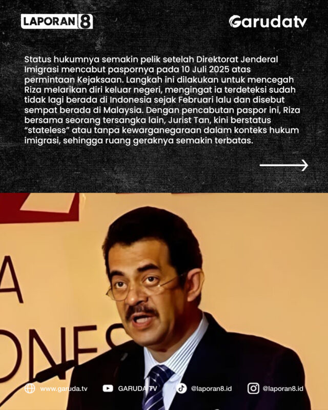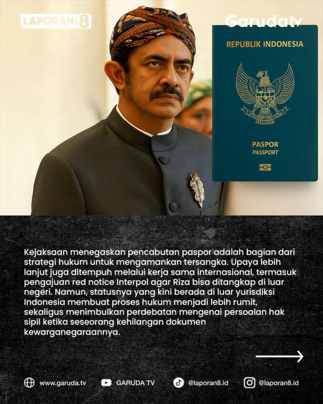 Kejaksaan Agung menetapkannya sebagai tersangka dan Pemerintah resmi mencabut paspor Riza.
