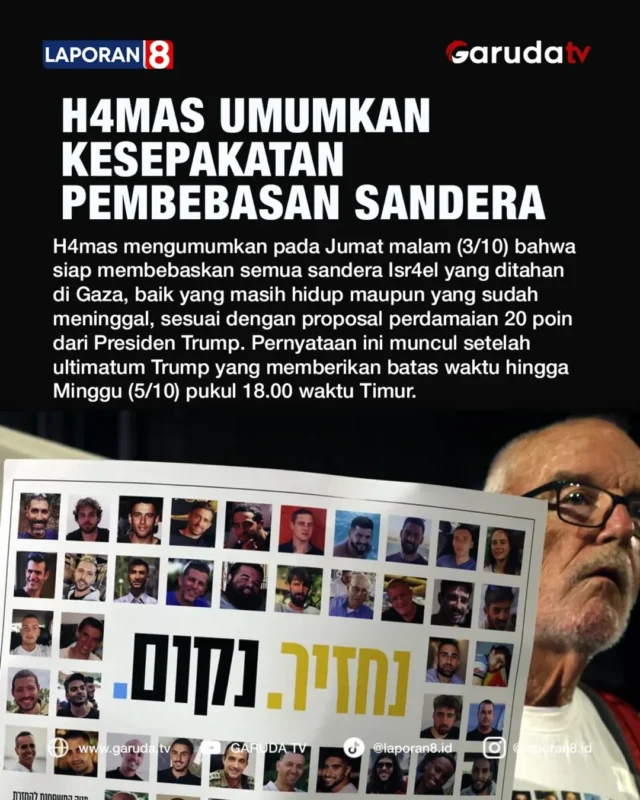 Ham4s resmi menyatakan kesediaannya membebaskan semua sandera Isr4el di Gaza,